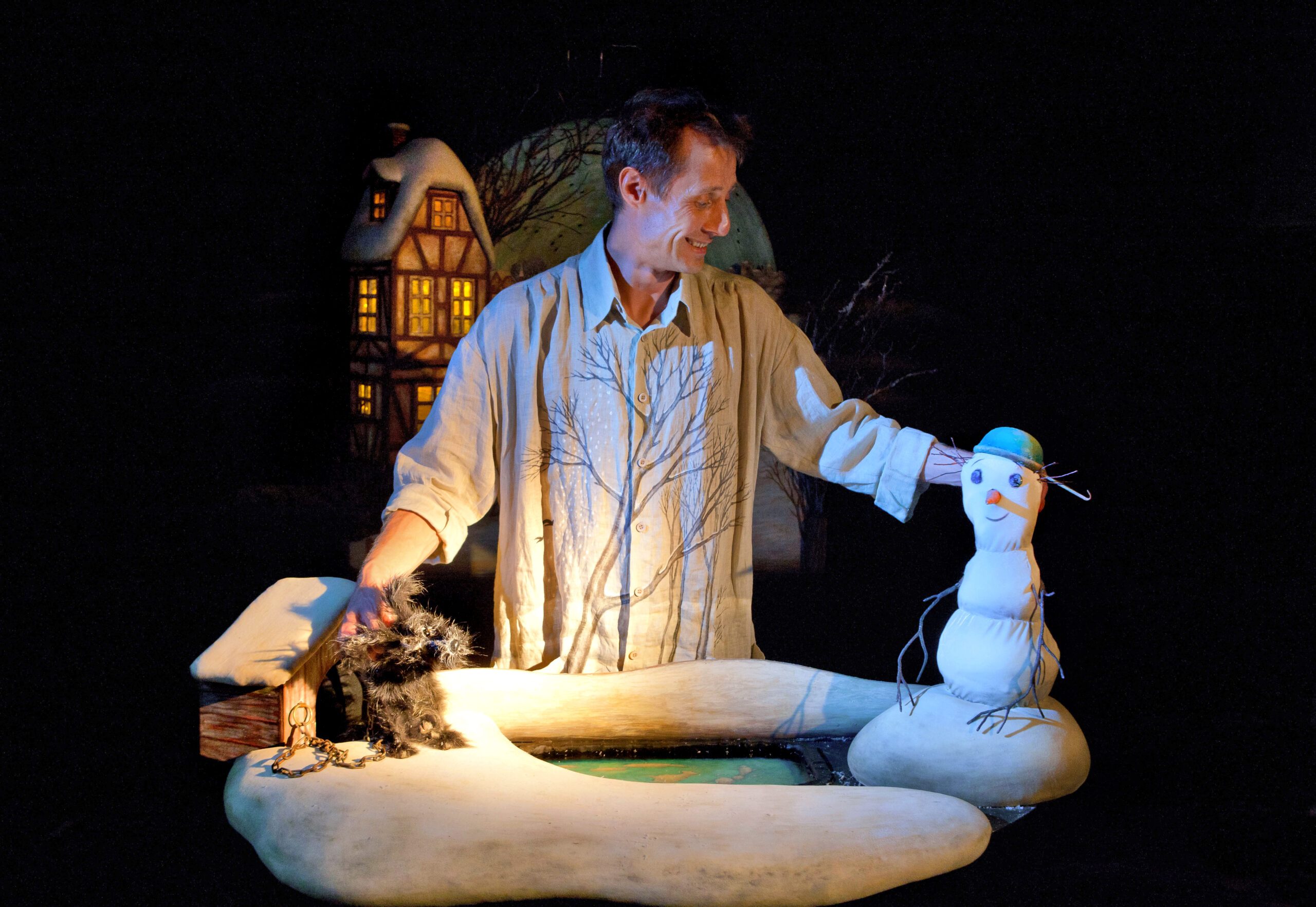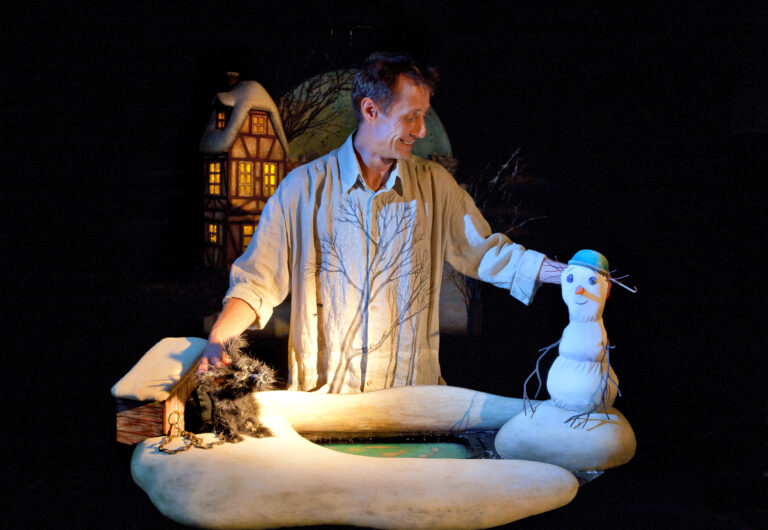 Волшебный и романтичный зимний спектакль по сказке Андерсена о Снеговике, который влюбился в жаркую печку. На крошечной сцене расположился целый город – озеро, дома, ратуша, мельница… Прекрасный пример наивного театра, напоминающего зрителю об истинной глубине человеческих чувств. Спектакль – лауреат Российской Национальной театральной премии «Золотая Маска».